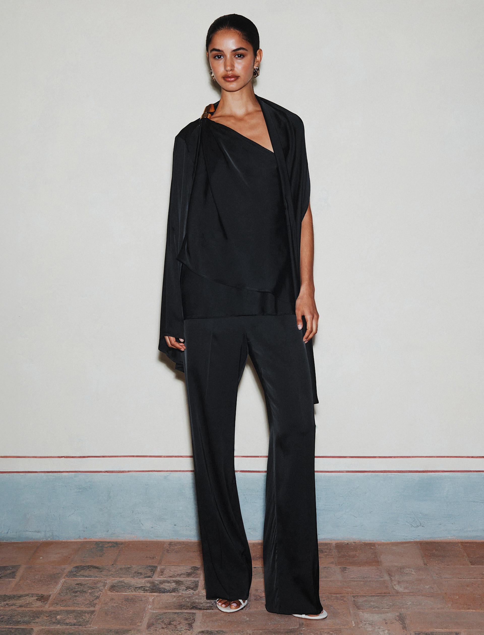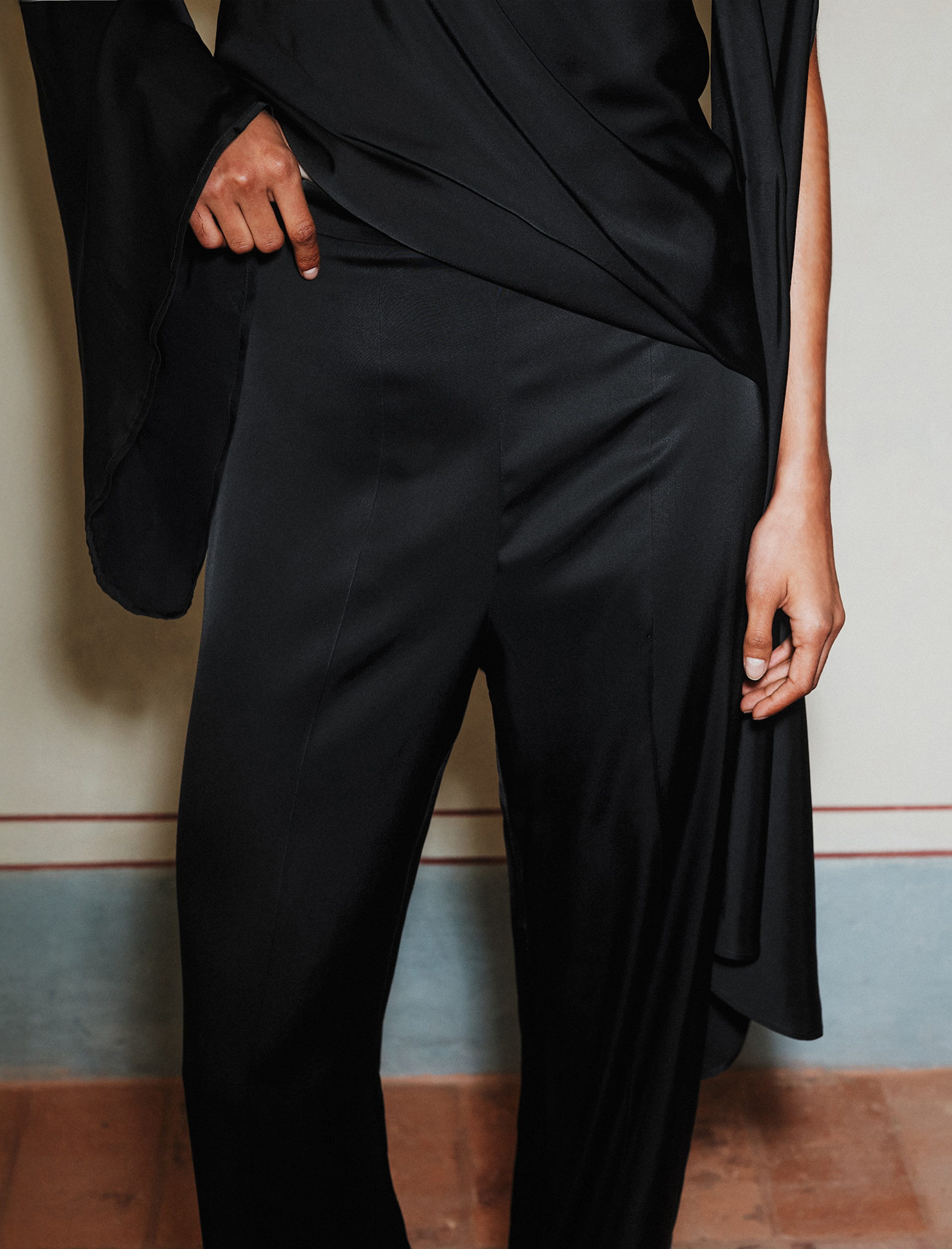 - Stretch viscose satin trousers